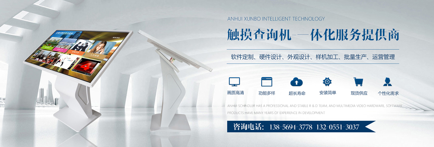 迅博智能 位于中國科教城---合肥市,和經(jīng)濟開發(fā)區(qū)與高新區(qū)毗鄰,地址合肥市肥西縣湯口路與皋城路交口人民萬福產(chǎn)業(yè)園一期12棟東側,是一家IT領域的高新技術企業(yè),全心全意服務于信息化建設,做專業(yè)的信息化提供商,全力打造信息時代新模式。 迅博智能 主要從事觸摸屏、觸摸顯示器、OLED柔性觸摸屏、觸摸查詢一體機系列產(chǎn)品及觸摸顯示互動體驗軟硬件產(chǎn)品;智能排隊叫號、網(wǎng)上預約排隊叫號、安康碼皖事通取號系統(tǒng);曲面屏、OLED 屏幕、柔性屏、LCD液晶大屏拼接系統(tǒng);落地式、壁掛式單機版網(wǎng)絡版室內外廣告機及數(shù)字標牌廣告信息發(fā)布系統(tǒng);室內外LED電子格柵透明屏、單雙色、全彩電子大屏;各類辦事營業(yè)廳:公積金...